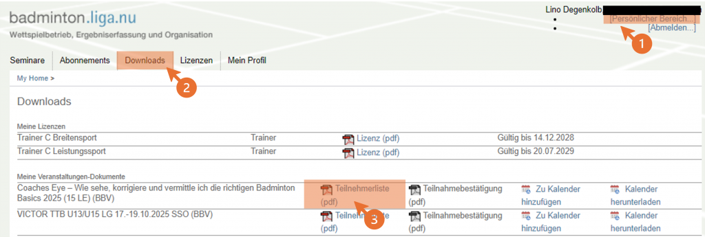 Du findest Deine aktuellen Lizenzen der Lizenzstufen Trassi, C, B und A stets aktuell zum Download auf Deinem nuLiga-Profil.